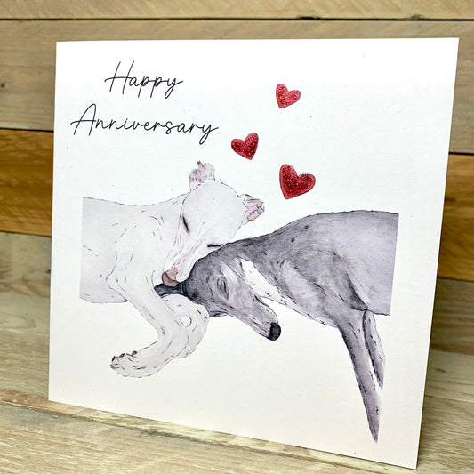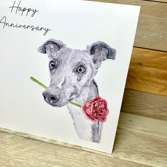 Long Noses and Roses Whippet Anniversary Card