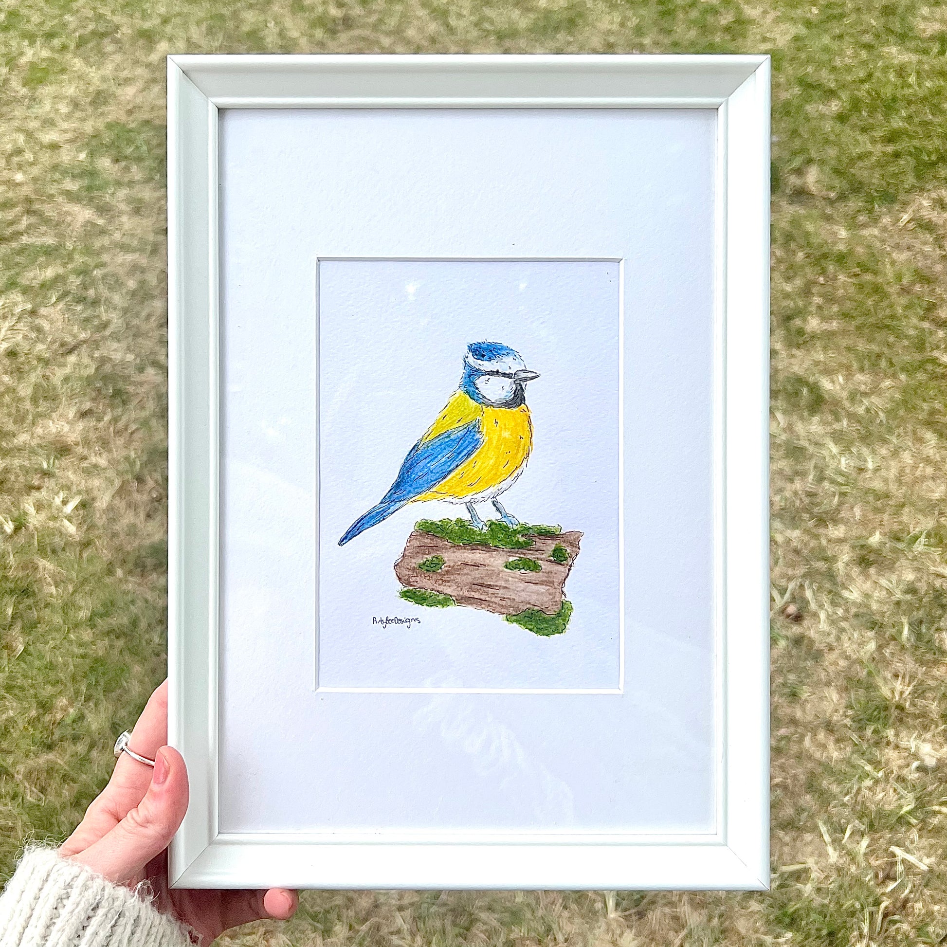 "Belle the Bluetit" original watercolour painting has been hand painted by myself onto watercolour paper, finished with watercolour pencils and a thin fine line.