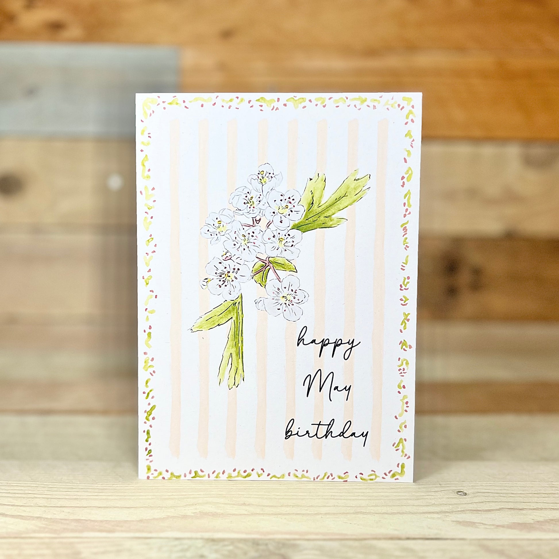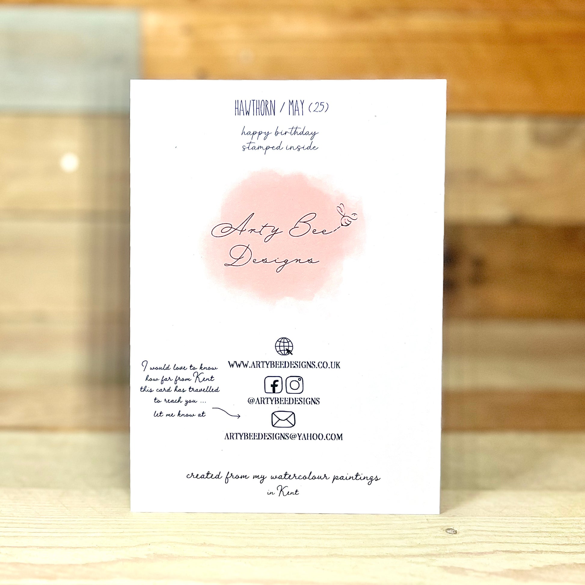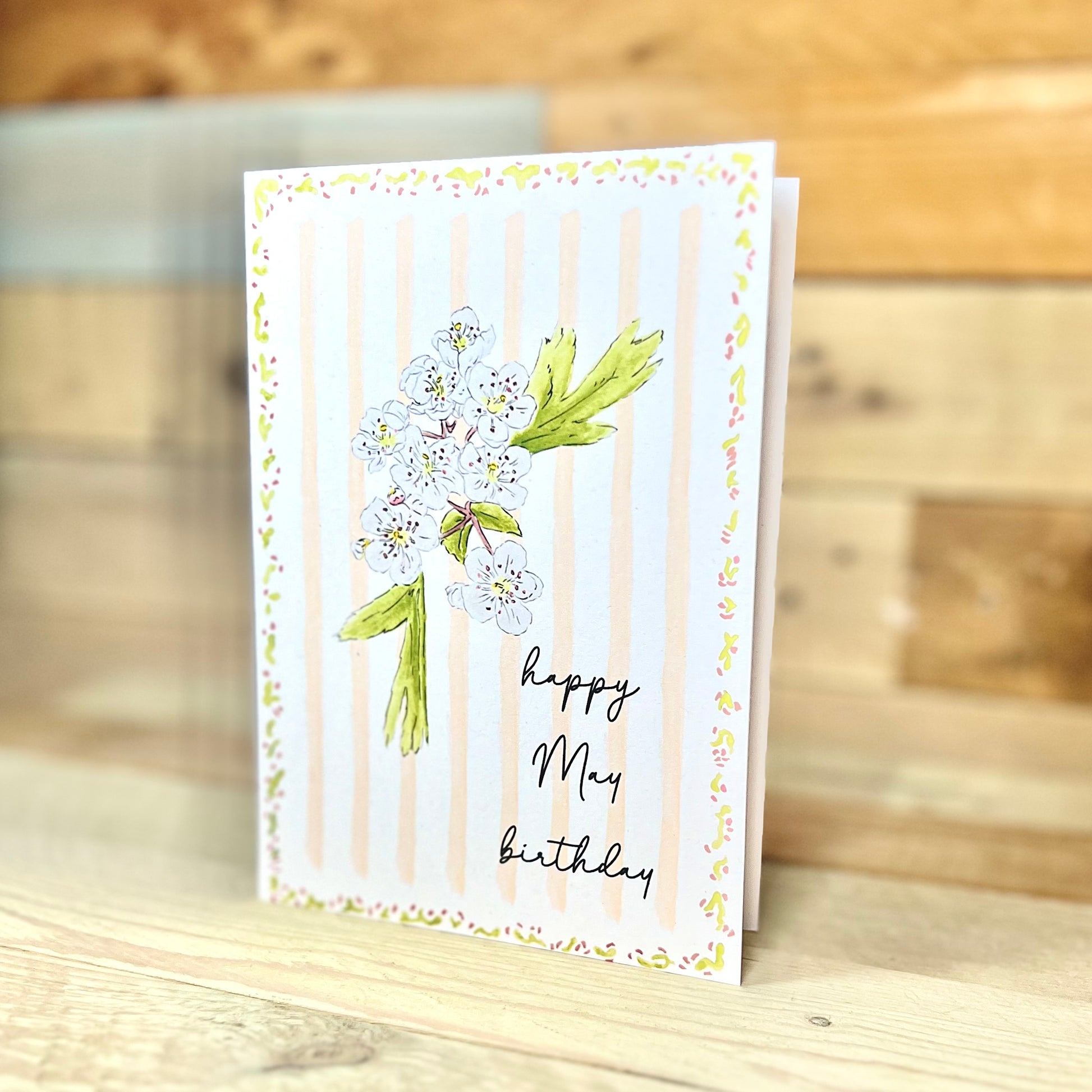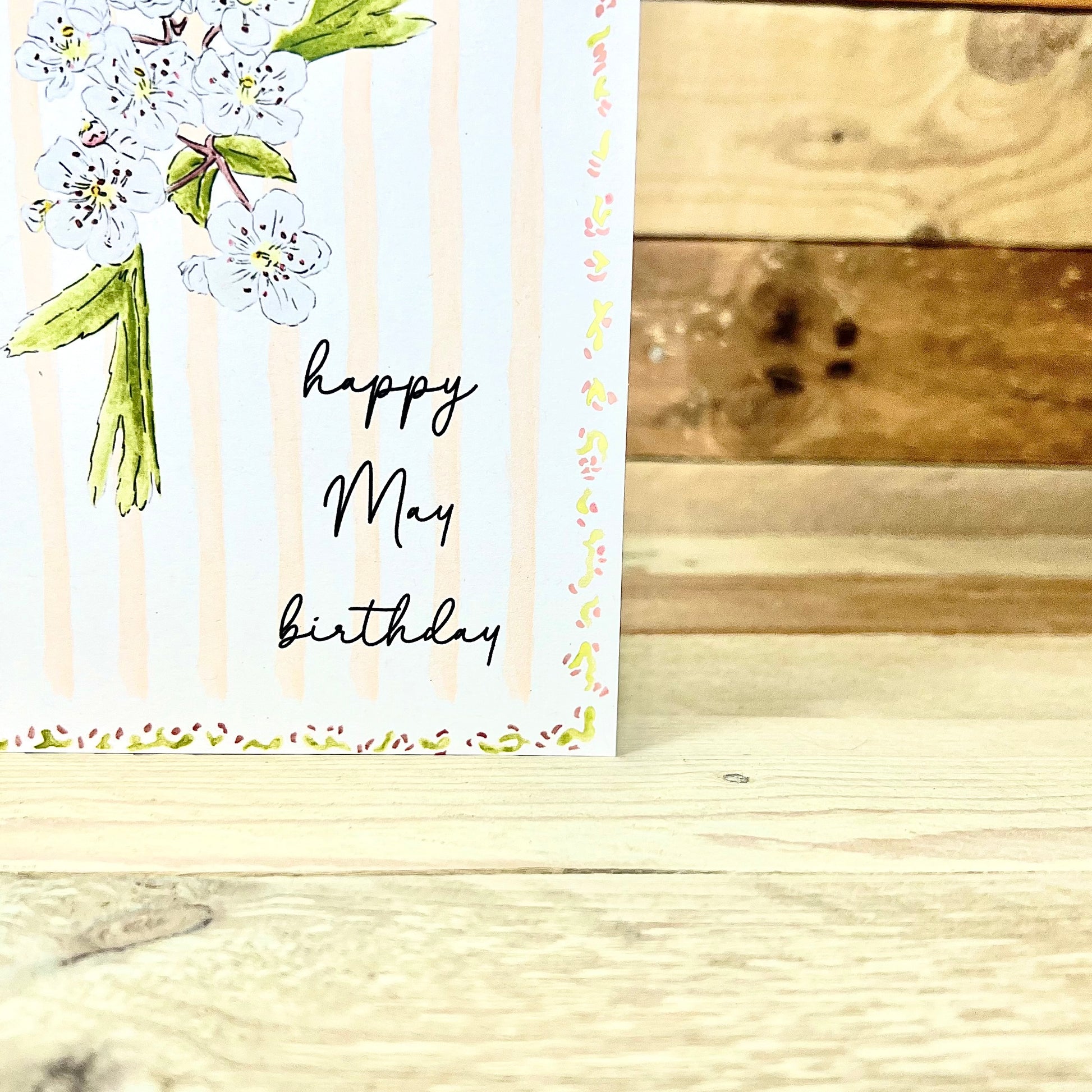 Classic yet unique, this vintage-style card features May's birth flower - hawthorn. It's a unique and special way to celebrate someone's birthday.